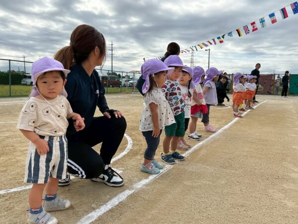 初めて参加の満3歳児ことり組、1・2歳児ひよこルームの子達も運動会に参加☆