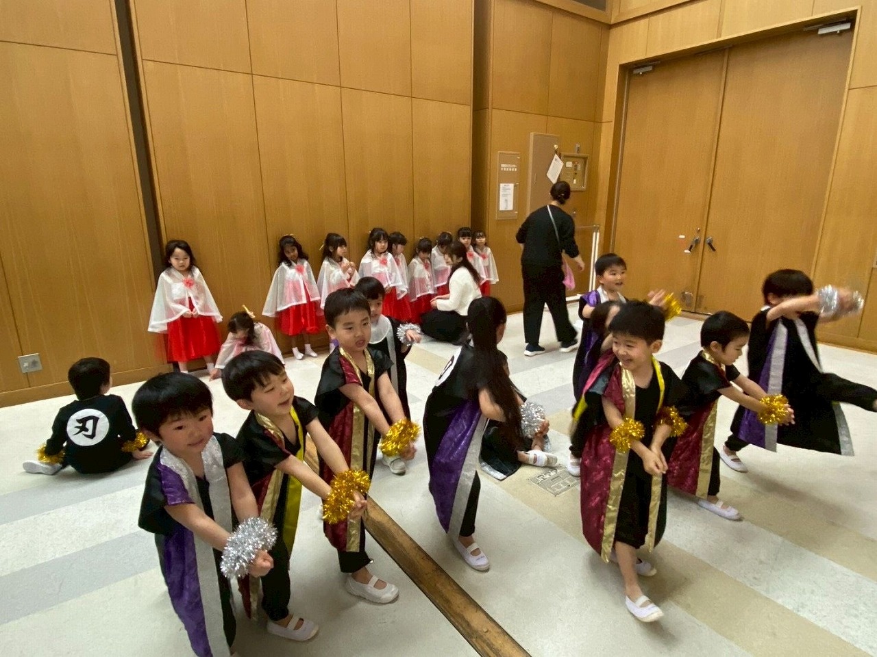 ひとえに、舞台裏や園児控室で、子ども達の着替えやトイレのサポートをして頂きました有志の方々をはじめ、当日までお子様の体協管理に努めて頂いたご家族の皆様のおかげです。ご協力頂きました皆様には本当に感謝の気持ちでいっぱいです。ありがとうございました。
