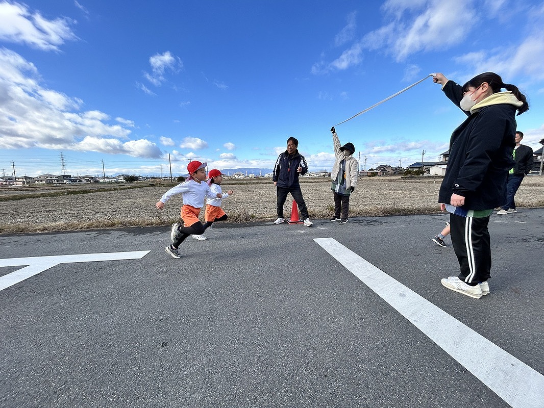 前日の雪の影響で、急きょゴール位置を変更することになりましたが、みんな元気いっぱい走り切ることができました。